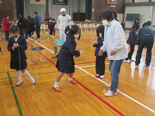 1月30日(月)に,23名の笑和クラブの皆様に来ていただき,1年生が生活科で昔のあそびを教えていただきました。